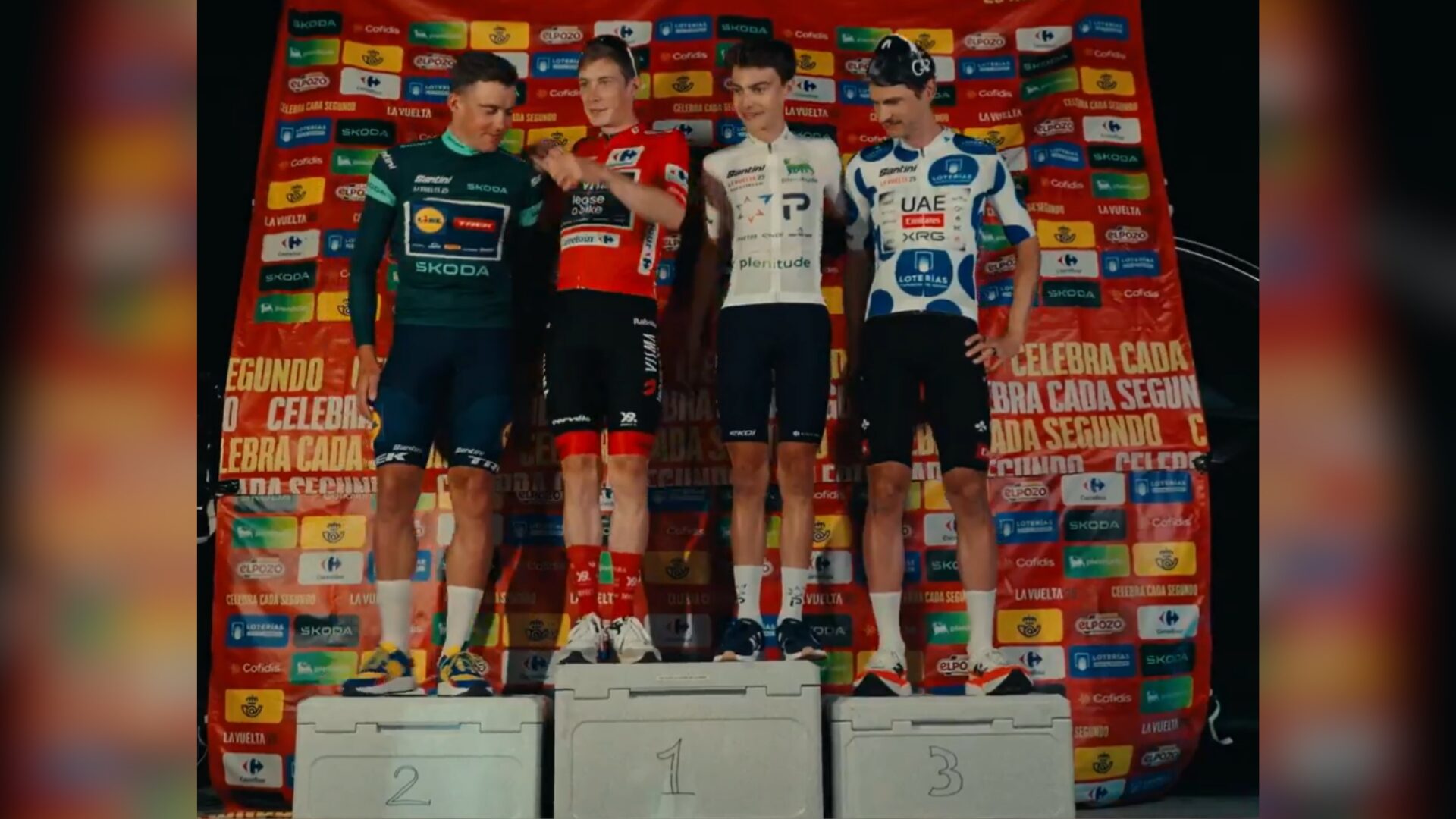 En el parking del hotel en el que se alojaban el equipo Visma y Q36.5, se improvisó un podio para que los ganadores y resto de participantes pudieran celebrar juntos. Jonas Vingegaard, Joao Almeida y Tom Pidcock subieron a las neveras portátiles, rellenadas por dentro, en las que aparecían pintados los números '1, 2 y 3', levantaron sus trofeos y posaron para que las cámaras inmortalizaran una imagen que seguro quedará guardada en la historia.