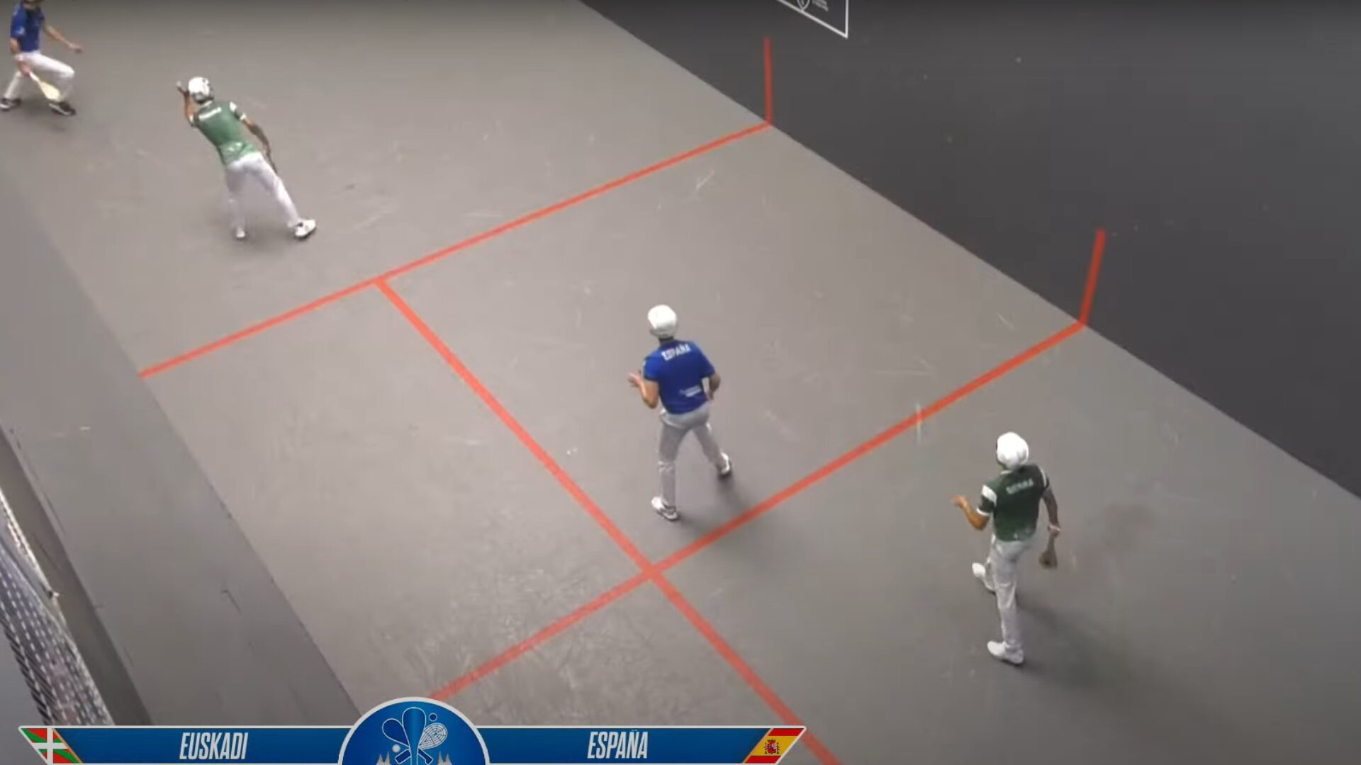 El encuentro correspondió a la tercera jornada de la fase preliminar en la categoría paleta cuero masculina. La dupla formada por Juan Indurain e Ignacio Pérez, pertenecientes al combinado español, se impusieron a la pareja compuesta por Endika García y Markel Sierra con parciales de 15-9 y 15-10.