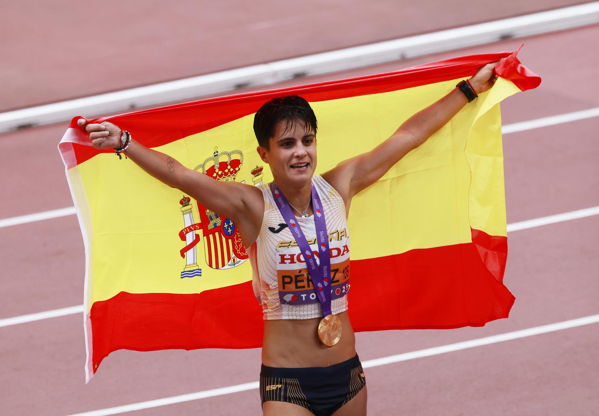 La española María Pérez, con un tiempo de 1h25:54, logró este sábado la medalla de oro en los 20 kilómetros marcha de los Mundiales de atletismo que se disputan en Tokio y revalidó el oro mundial de 20 kilómetros marcha, que había conquistado hace dos años en Budapest, y completó la doble corona junto al de los 35 km marcha.