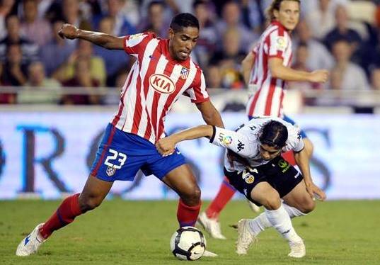 Los rojiblancos comenzaron dominando y fue el 'Kun' Agüero quien, después de un gran contrataque comenzado por Jurado -el gaditano sustituía a Maxi Rodríguez en el once inicial-, firmaba el primer gol de la noche. Jurado asistió a Forlán con un sensacional taconazo y el uruguayo vio cómo se desmarcaba Agüero, que batió a Moyá con la pierna izquierda por el palo corto. Tras el gol del argentino, el Valencia se estiró en busca del empate y Villa gozó de una clara ocasión después de un centro de Silva desde la banda izquierda, pero era el Atlético el que llevaba el peligro y fue el 'Kun' el que tuvo un mano a mano con el ex del Mallorca, aunque echó el balón fuera al cruzar su disparo en exceso.