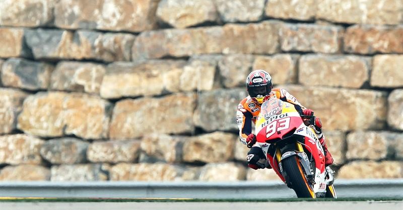 Marc Márquez saldrá desde la pole position en el GP de Aragón. El piloto del Repsol Honda resolvió a su favor el duelo con Jorge Lorenzo (Yamaha YZR M 1) para conseguir el mejor lugar de la formación de salida por apenas diez milésimas de segundo y ambos en su última vuelta rápida.