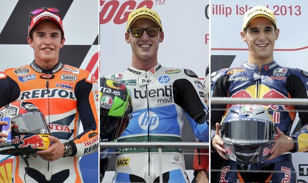 Moto3 es la categoría en la que los tres primeros están más cerca. Luis Salom (KTM) mantiene la primera posición, pero ya a solo cinco puntos de Alex Rins (Estrella Galicia 0,0 KTM), vencedor en el Gran Premio de Australia.