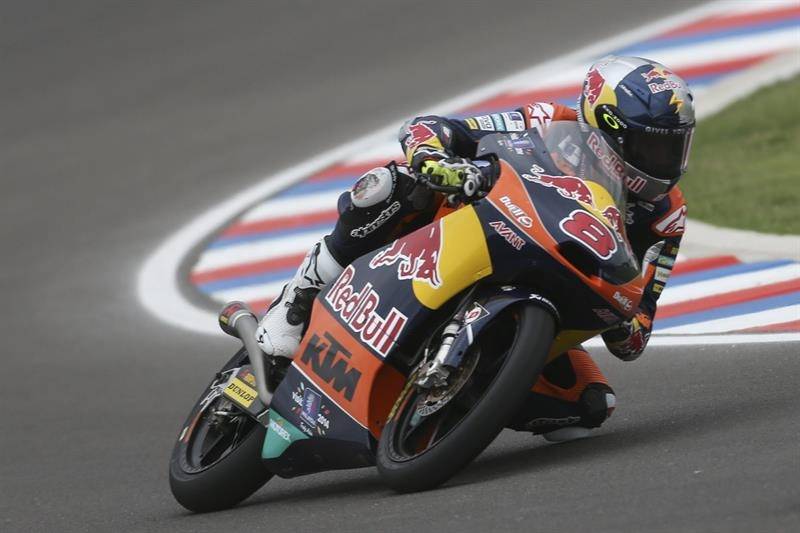 Isaac Viñales (KTM), que por la mañana llegó a ocupar el cuarto lugar dio varios pasos atrás y en la clasificación oficial no pudo pasar de la decimoctava plaza con 1:50.6, dos décimas de segundo más lento de lo que había estado por la mañana. La única fémina de la categoría, la española Ana Carrasco (Kalex KTM), mejoró en más de un segundo y medio su mejor tiempo del fin de semana, pero para concluir en una discreta vigésimo octava plaza.