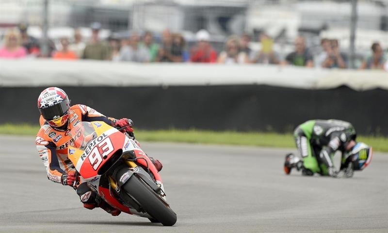 El español Marc Márquez (Repsol Honda RC 213 V) culminó su progresión de entrenamientos durante el fin de semana del Gran Premio de Indianápolis de MotoGP que mañana se va a disputar en el circuito Brickyard, con la octava mejor clasificación de entrenamientos en lo que va de la presente temporada.
