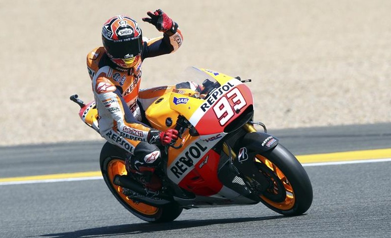 Márquez logró un nuevo récord de 1:47.187 y doblegó así a su propio compañero en el equipo Repsol Honda, Dani Pedrosa, quien hubo de conformarse con la segunda plaza a 362 milésimas de segundo.