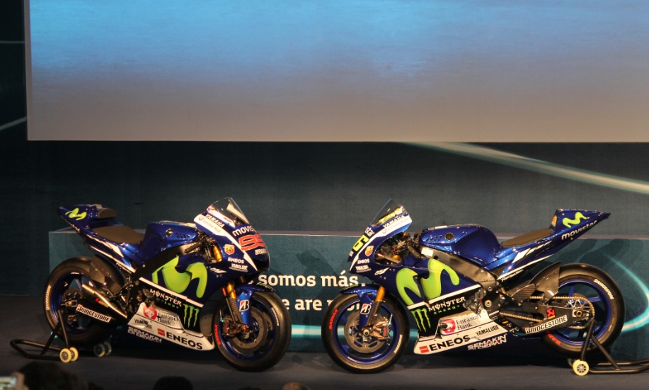 El italiano Valentino Rossi y el español Jorge Lorenzo han sido las estrellas del equipo Movistar Yamaha MotoGP, que por primera vez en más de diez años ha realizado la presentación oficial en las instalaciones del Distrito Telefónica. | Fotos: Lucía Prieto