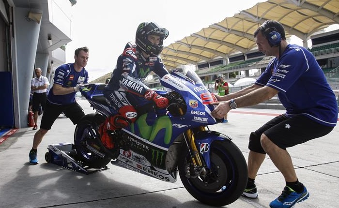 El español Jorge Lorenzo (Yamaha YZR M 1) se puso al frente de la clasificación de entrenamientos en la segunda jornada de pruebas que se desarrolló en el circuito malayo de Sepang y en la que fue el único piloto en romper la barrera de los dos minutos.