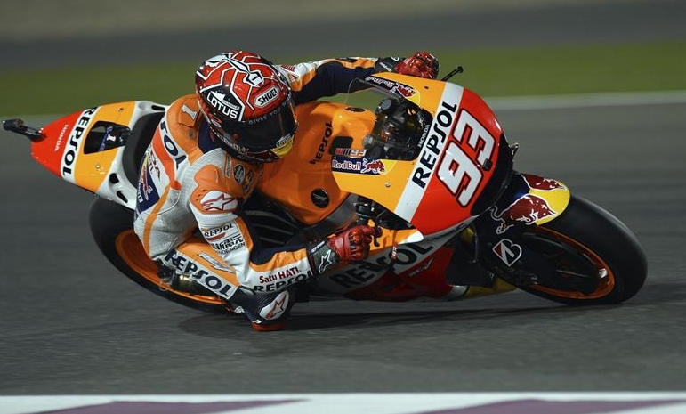 El español Marc Márquez (Repsol Honda RC 213 V) no cedió en sus intenciones de ser el más rápido desde el primer momento en los entrenamientos libres del Gran Premio de Qatar de MotoGP, que se han disputado en el circuito de Losail, pero las diferencias con sus rivales resultaron mínimas.