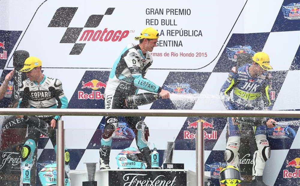 Junto a Johann Zarco, en el podio de Termas de Río Hondo, se situaron el español Alex Rins (Kalex) y el británico Sam Lowes (Speed Up).