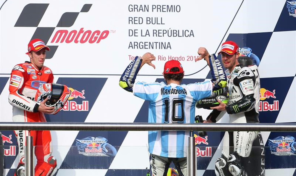 Con Rossi en el podio de Argentina acabaron su compatriota Andrea Dovizioso (Ducati Desmosedici GP15) y el británico Cal Crutchlow (Honda RC 213 V), que le "birló" sobre la misma línea de meta al italiano Andrea Iannone (Ducati Desmosedici GP15) la tercera posición.