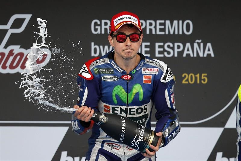 Ni Jorge Lorenzo, que rodó 27 segundos más rápido que la carrera de 2014, ni Marc Márquez (Repsol Honda RC 213 V), que aguantó el dolor de su mano izquierda, fallaron en el momento de la salida, lo que si le sucedió al italiano Andrea Iannone (Ducati Desmosedici GP15), mientras que Pol Espargaró (Yamaha YZR M 1) aprovechó su oportunidad y se coló hasta la tercera posición, por delante del también italiano Valentino Rossi.