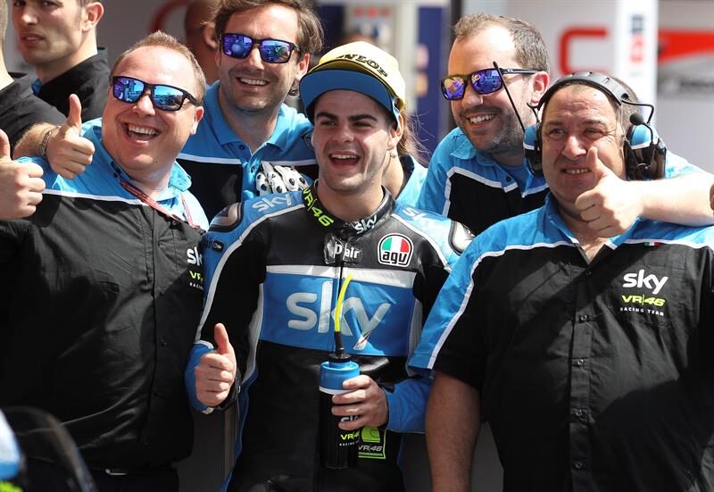 El piloto italiano consolidó su ventaja hasta la bajada de la bandera de cuadros, mientras por detrás el español Arón Canet (Estrella Galicia 0'0 Honda) ascendió hasta la séptima plaza tras una carrera en constante progresión, con Juanfran Guevara (KTM), duodécimo, y María Herrera (KTM), vigésima tercera plaza.