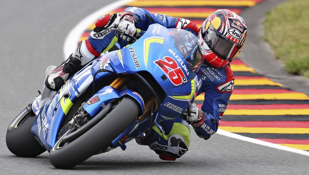 El español Maverick Viñales (Suzuki GSX-RR) marcó el paso con un ritmo espectacular a todos sus rivales en la primera jornada del Gran Premio de Alemania de MotoGP, a pesar de la caída que sufrió en Sachsenring y que dejó una de sus motos con cuantiosos daños materiales.