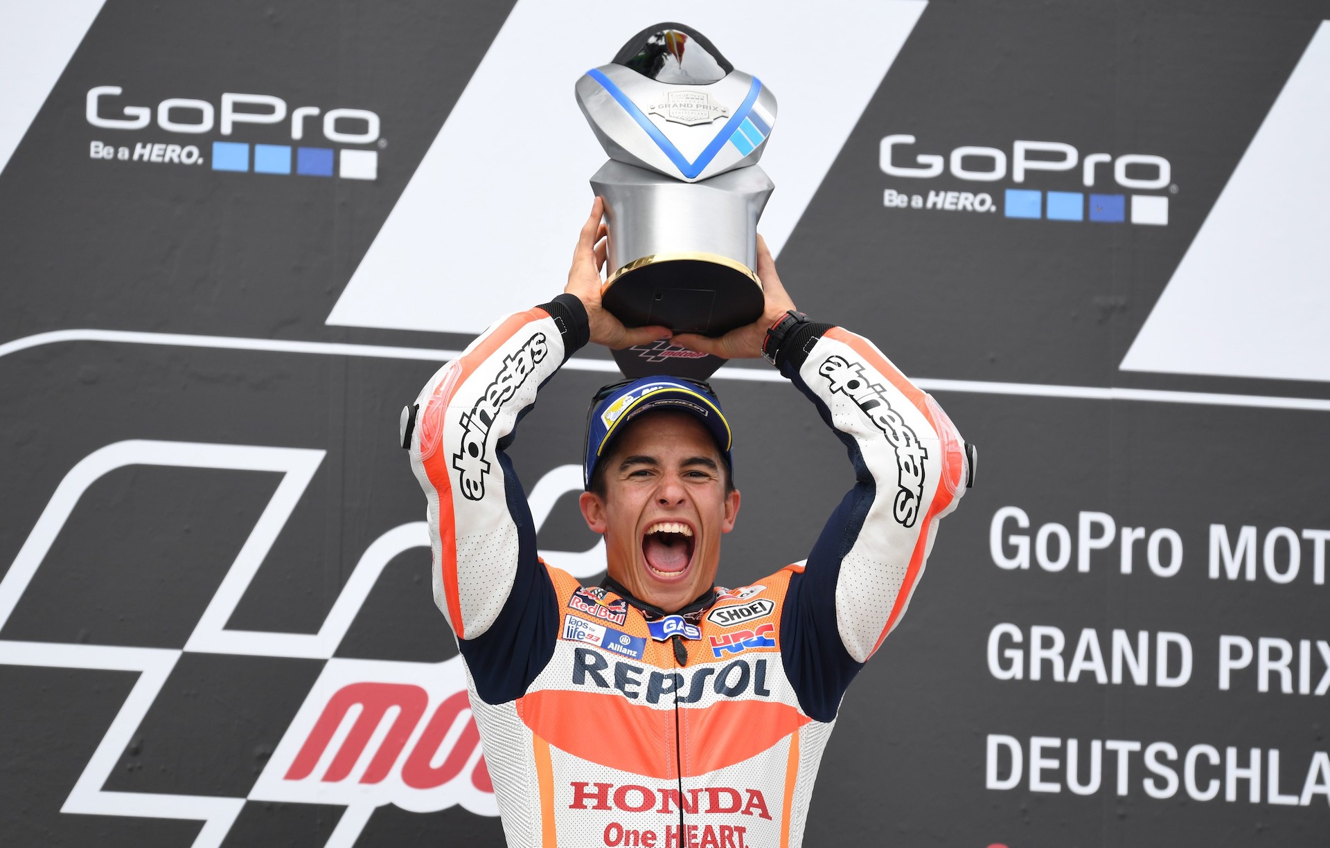 El español Marc Márquez (Repsol Honda RC 213 V) consiguió una victoria magistral y de auténtico estratega junto a su equipo al vencer con claridad el Gran Premio de Alemania de MotoGP que se disputó hoy, domingo, en el circuito de Sachsenring.