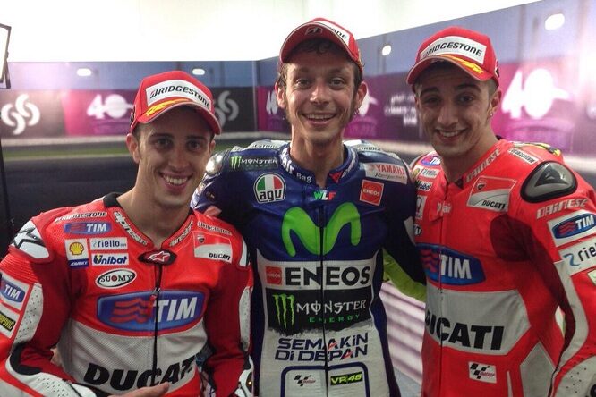 Los últimos minutos resultaron espectaculares, con hasta cinco pilotos en milésimas de segundo, hasta que Andrea Dovizioso desbancó de la primera plaza a Lorenzo por 63 milésimas de segundo, con Rossi y Iannone rodando por debajo del mejor tiempo en cada uno de los parciales para invertir en la recta de meta sus posiciones, con el de Ducati como el más rápido, por delante de Rossi y Dovizioso.
