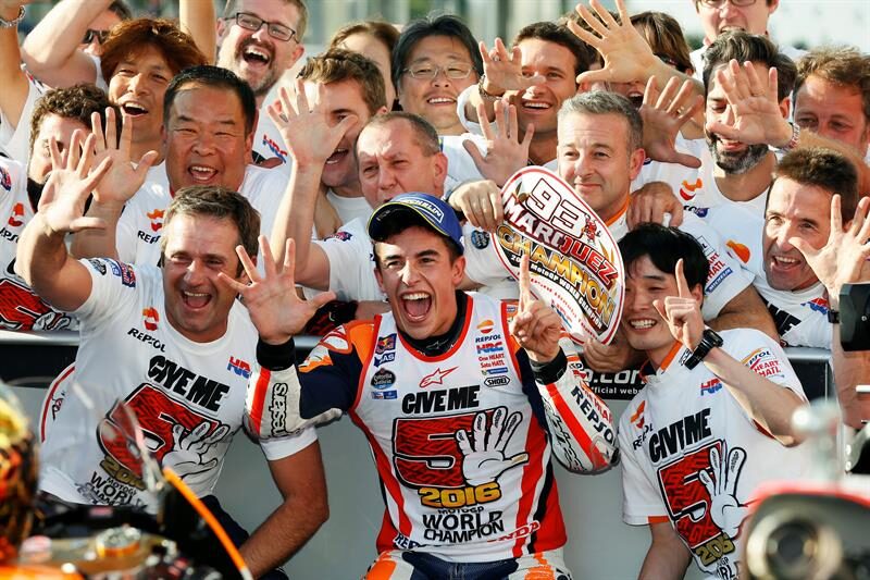 Márquez se vio beneficiado de las caídas de sus inmediatos perseguidores en la tabla del mundial, el italiano Valentino Rossi, primero, y el español Jorge Lorenzo, después, para conseguir matemáticamente su tercer título mundial de MotoGP y el quinto en su trayectoria en el campeonato del mundo de motociclismo.