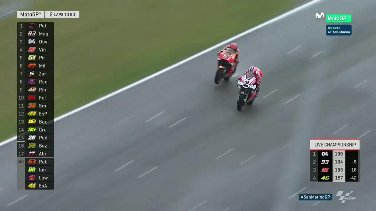El de Cervera adelantó a Danilo Petrucci en la última vuelta para acabar ganando el GP de San Marino de MotoGP y recuperar el liderato del Mundial, empatado a 199 puntos con Dovizioso.