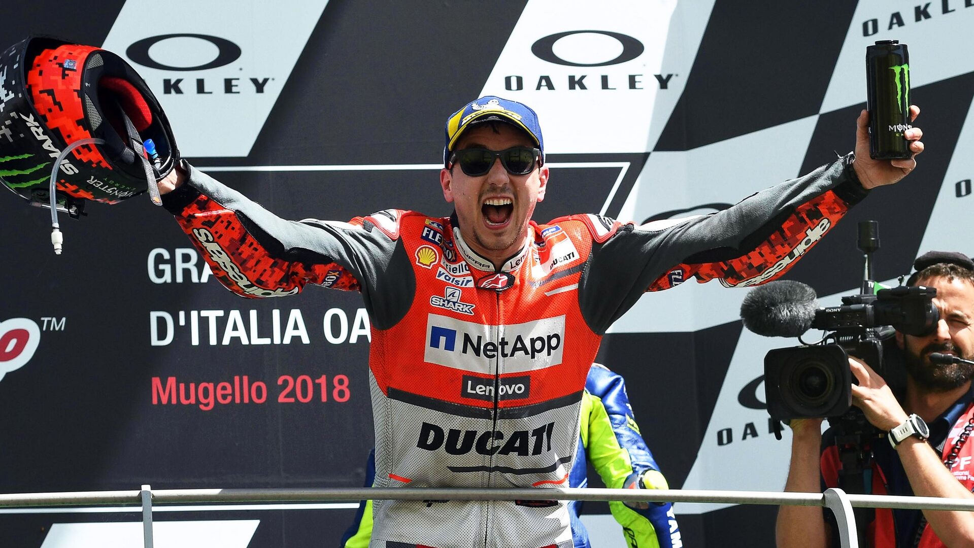 Lorenzo ya contestó al capo de Ducati en sala de prensa —"yo no soy un gran piloto, soy un campeón", dijo— y ahora lo hace en la pista, volviendo a subir al primer lugar del cajón —la última vez que lo hizo fue en Cheste a mediados de noviembre de 2016, entonces a lomos de una Yamaha— y liderando el doblete de la firma boloñesa en Mugello tras el segundo puesto de su compañero transalpino Andrea Dovizioso, subcampeón del mundo del pasado año.