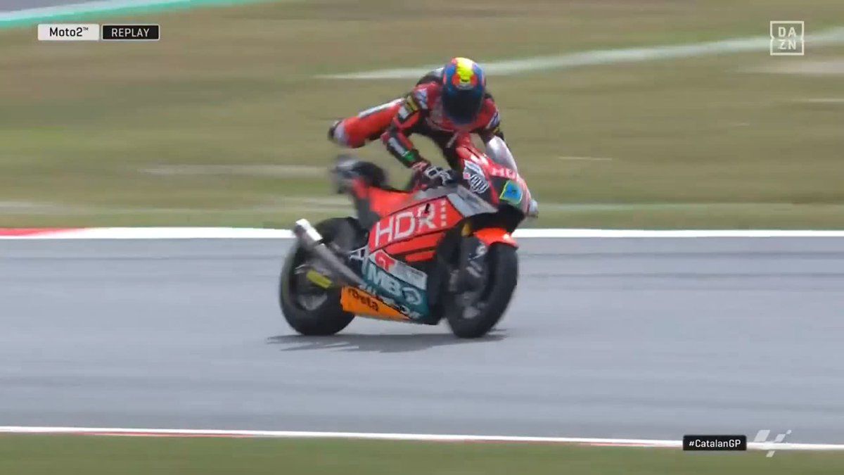 El piloto valenciano de Moto2 se llevó un buen susto sobre su moto Speed Up, durante la primera sesión de libres del GP de Cataluña, aunque finalmente pudo mantener el tipo.