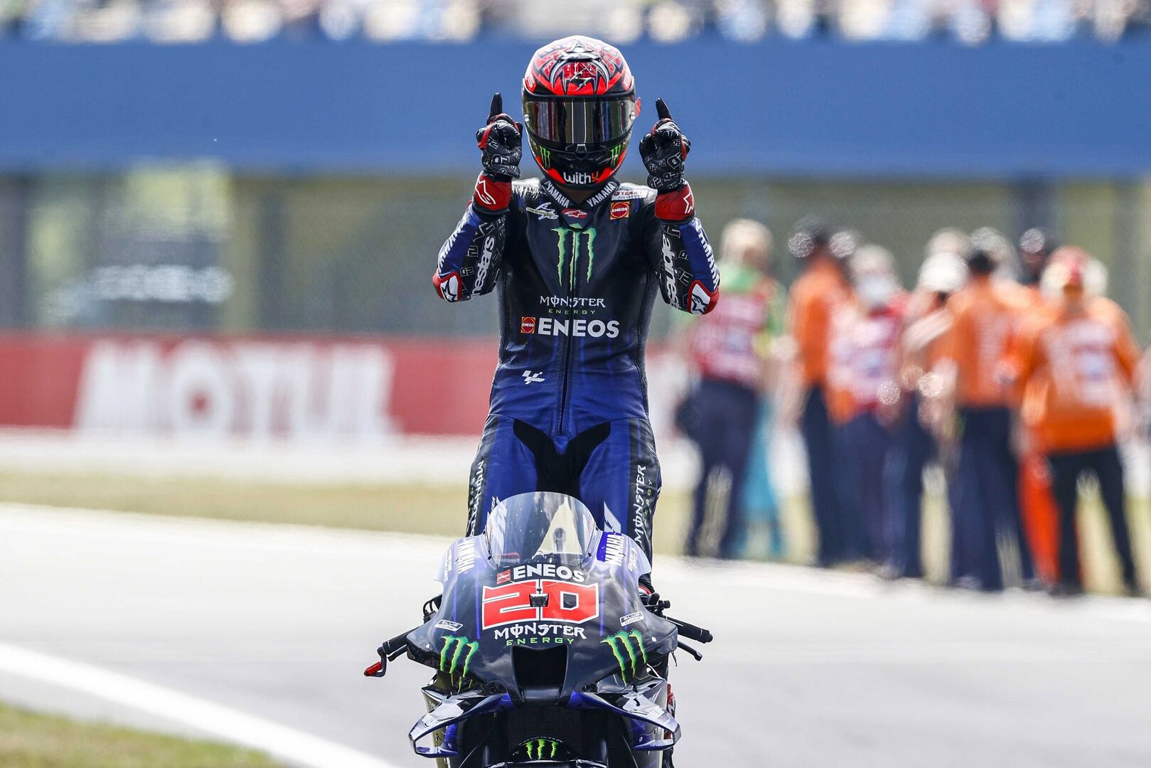 El francés Fabio Quartararo (Yamaha) se adjudicó su cuarta victoria de la temporada al vencer el Gran Premio de los Países Bajos de MotoGP en el circuito de Assen de manera clara, decisiva y agresiva aprovechando un error de su compañero de equipo Maverick Viñales, el cual ha liderado todo el fin de semana pero ha terminado segundo, el español Joan Mir (Suzuki) ha acabado tercero.