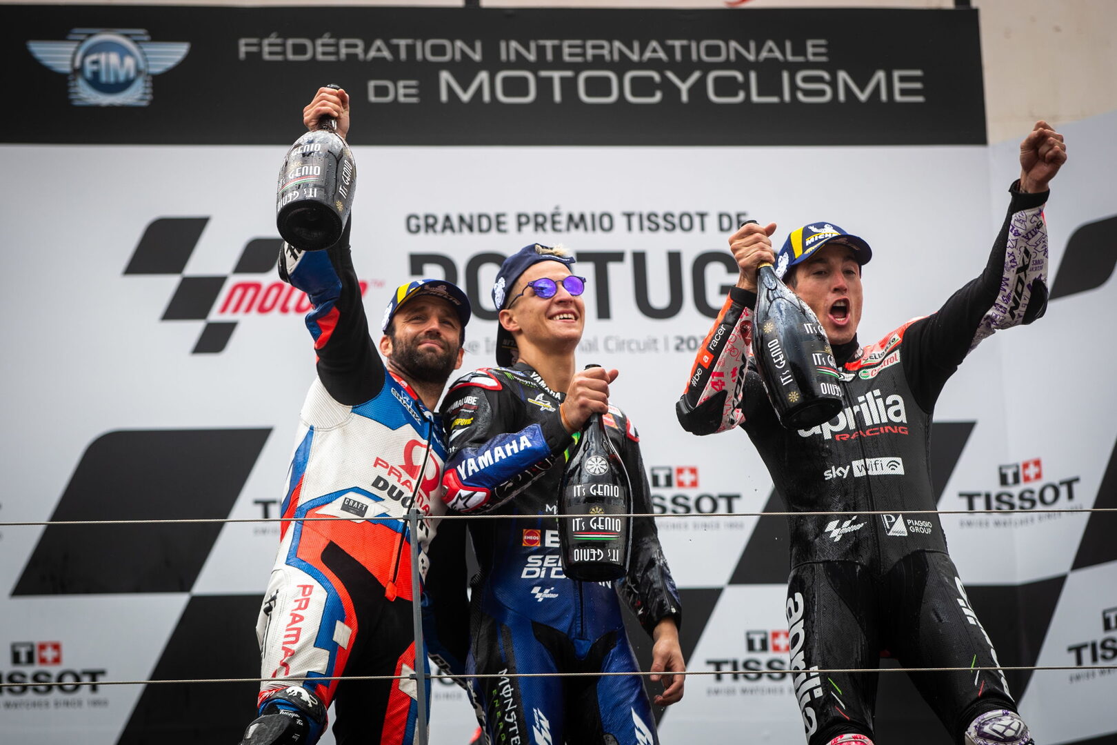 El francés Fabio Quartararo (Yamaha YZR M 1) logró su primera victoria de la temporada al imponerse con autoridad y en solitario en el Gran Premio de Portugal de MotoGP que se disputó en el circuito de Portimao. Le acompañaron en el podio su compatriota Johann Zarco (Ducati Desmosedici GP22) y el español Aleix Espargaró (Aprilia RS-GP).