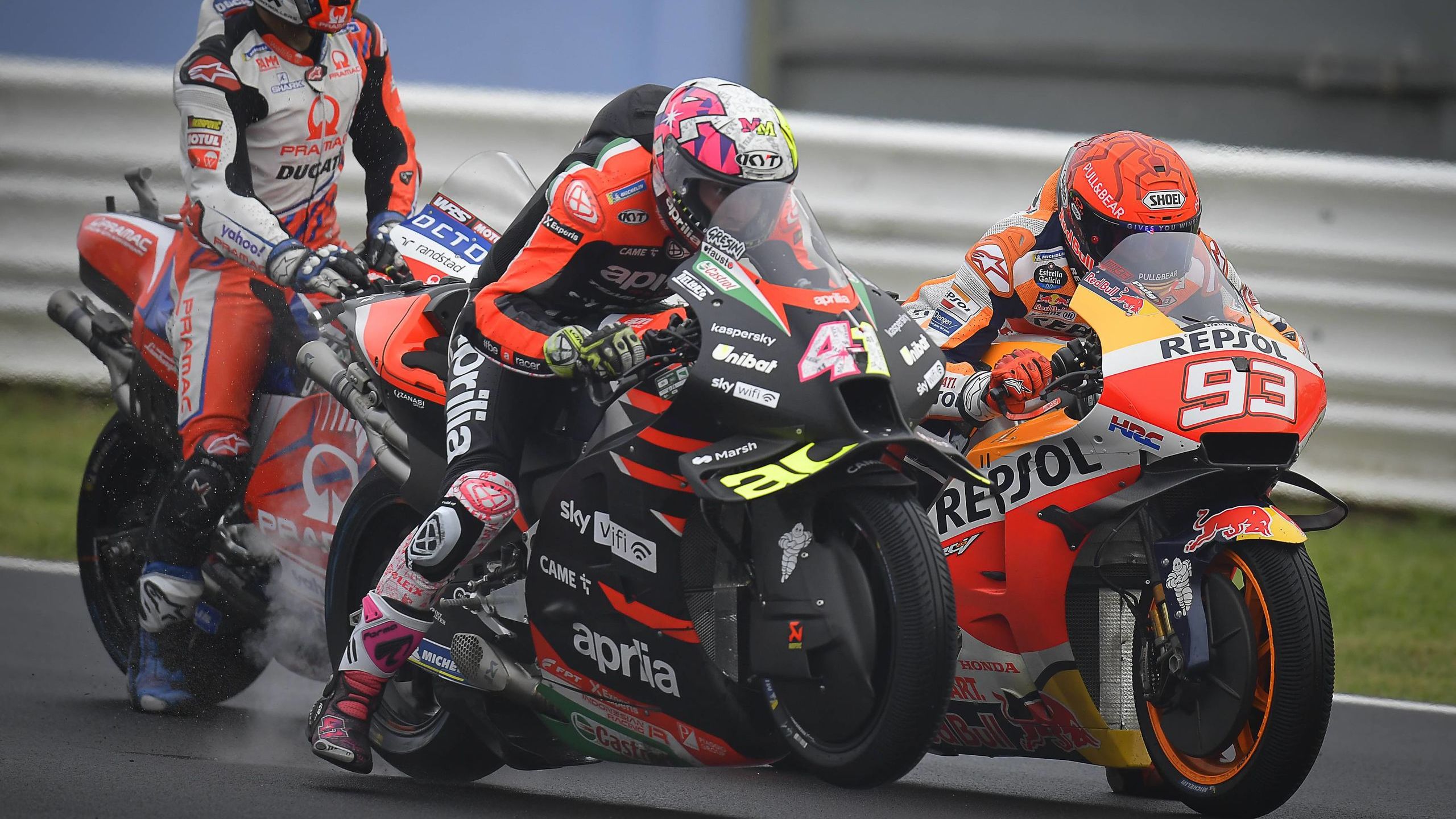 Marc terminó recalcando que no cree que Aleix tenga "ninguna fijación con él". "No sé, eso se lo tendríais que preguntar a él, pero en el caso de Aleix, cuando yo estaba en esa posición, porque lo he estado, delante del campeonato, yendo rápido, y me buscaban rueda, no me quejaba, me sentía fuerte, como orgulloso de que me busquen la rueda y es normal que si te encuentras delante del campeonato, te tienes que sentir orgulloso de que busquen tu rueda para hacer una vuelta, pero si tú te sientes con confianza en ti mismo, y vas rápido y estas luchando por ser primero en el Mundial, te da igual, y más un piloto que hoy estaba el 20. Esto en el motociclismo siempre ha pasado y siempre pasará".