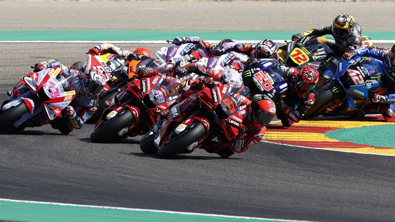 El italiano Enea Bastianini (Ducati Desmosedici GP21) no perdonó y superó a su compatriota Francesco "Pecco" Bagnaia (Ducati Desmosediici GP22) en la última vuelta del Gran Premio Motorland Aragón de MotoGP, en el que ni el francés Fabio Quartararo (Yamaha YZR M 1) ni el español Marc Márquez (Repsol Honda RC 213 V), que reaparecía en competición, consiguieron acabar la primera vuelta.