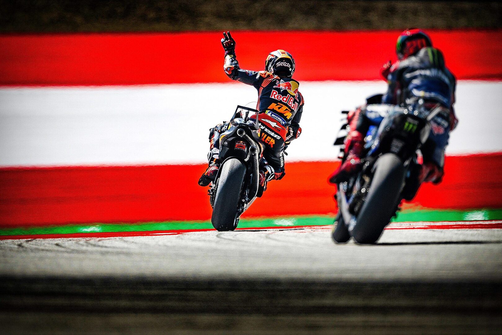 Más allá del carrerón de Bagnaia, resaltar, una vez más, el buen resultado de Binder con la KTM, que fue la única moto que pudo acercarse a la Ducati del vigente campeón. Una KTM que mira de reojo Mar Márquez que aún con los cambios que Honda traía para el Red Bull Ring, sólo ha podido ser duodécimo. Pero mientras que el de Cervera consiguió entrar en los puntos su compañero Joan Mir volvió a caerse, y ya son catorce las caídas del piloto español sólo esta temporada que seguro que querrá olvidar de su memoria.