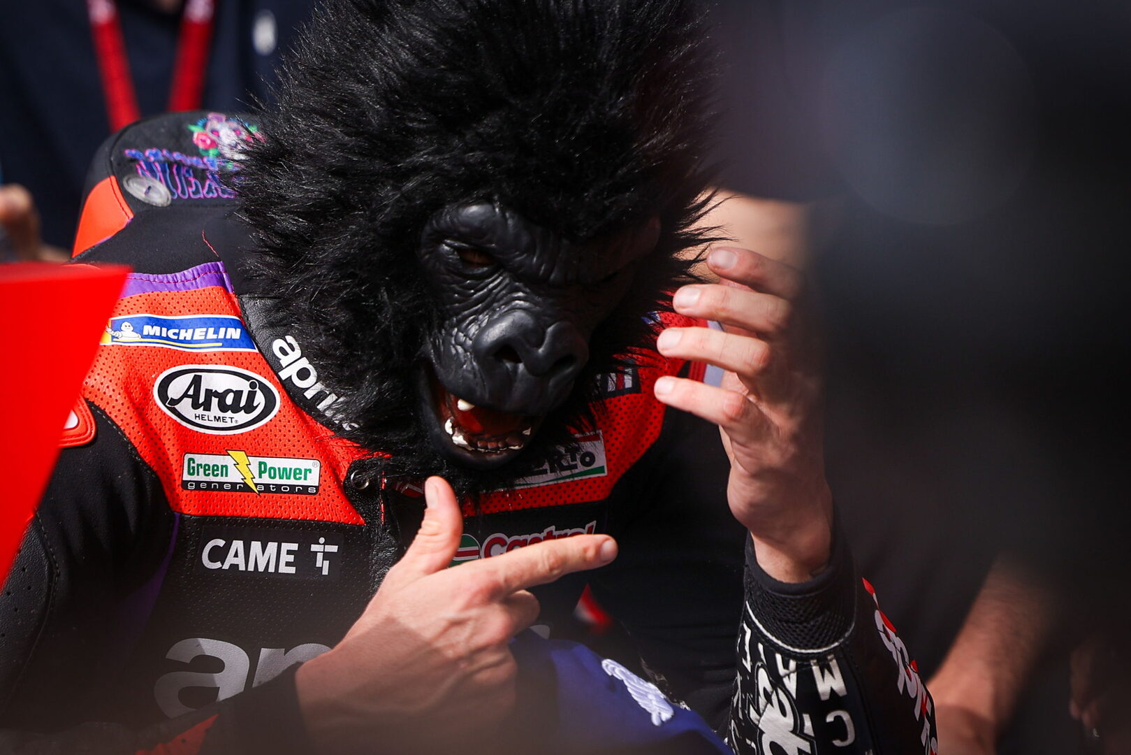 Maverick celebrando su victoria en la sprint con una máscara de gorila 😆 ¡Qué grande! #PortugueseGP 🇵🇹 #MotoGP 🏁 pic.twitter.com/EiJhCrijZa