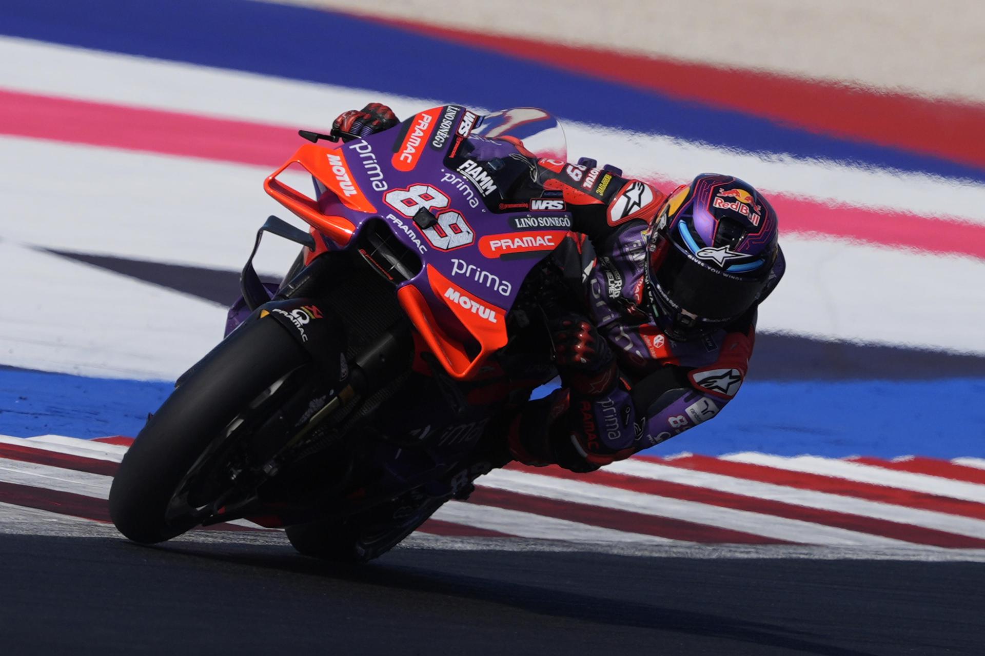 El español Jorge Martín (Ducati Desmosedici GP24) sorprendió al autor de la 'pole position' de MotoGP, el italiano Francesco 'Pecco' Bagnaia (Ducati Desmosedici GP24) en la carrera 'sprint' del Gran Premio de San Marino, en donde el italiano Tony Arbolino (Kalex) y el colombiano David Alonso (CFMoto) lograron las 'pole position' de sus respectivas categorías.