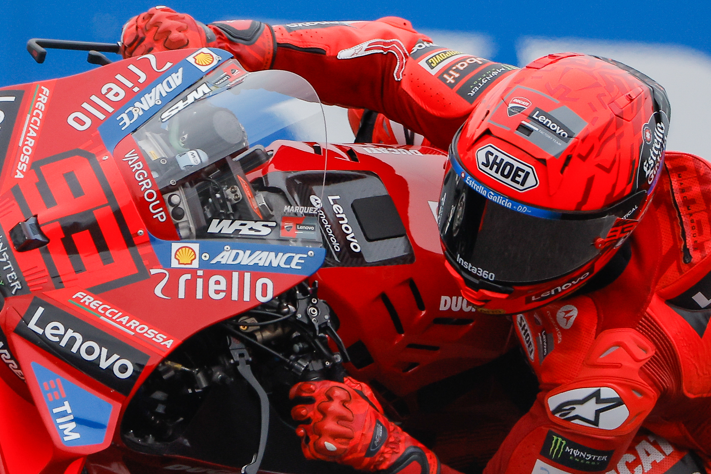 Como Acosta, también volvió al trazado Marc Márquez, que se apercibió de que le esperaban Pol Espargaró (KTM RC 16) y Enea Bastianini para coger su rueda, pero el líder del mundial se paró en seco para intentar que salieran por delante de él, pero ambos le esperaron en pista.