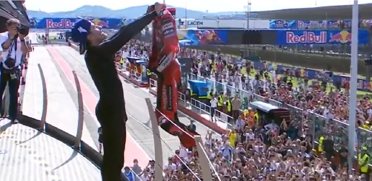 LA VERDAD QUE HAS IDO SIN MONO TODA LA TEMPORADA 👑@marcmarquez93 y su BRUTAL celebración a lo Messi en Misano #SanMarinoGP 🇸🇲 #MotoGP 🏁 pic.twitter.com/FxqMpbFl6d