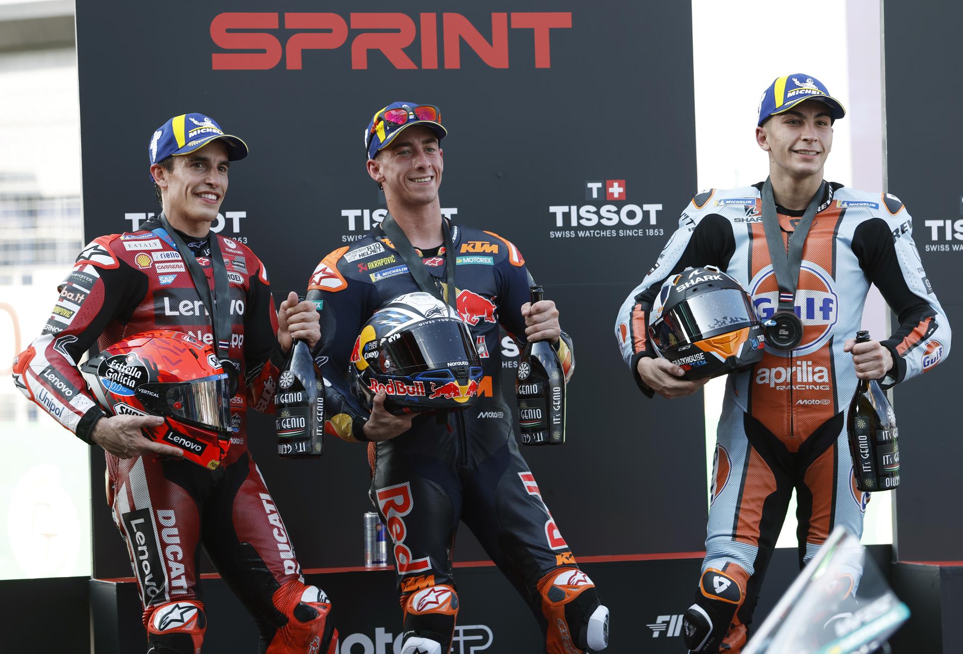 La Dirección de Carrera de los Grandes Premios consideró que uno de los adelantamientos de Marc Márquez a Pedro Acosta había sido irregular, al irse largo el primero. Por tanto, le obligó a ceder la posición en la última vuelta, lo que hizo que el campeón del mundo en título en la duodécima curva acabase en la segunda posición, por delante de Raúl Fernández (Aprilia RS-GP).