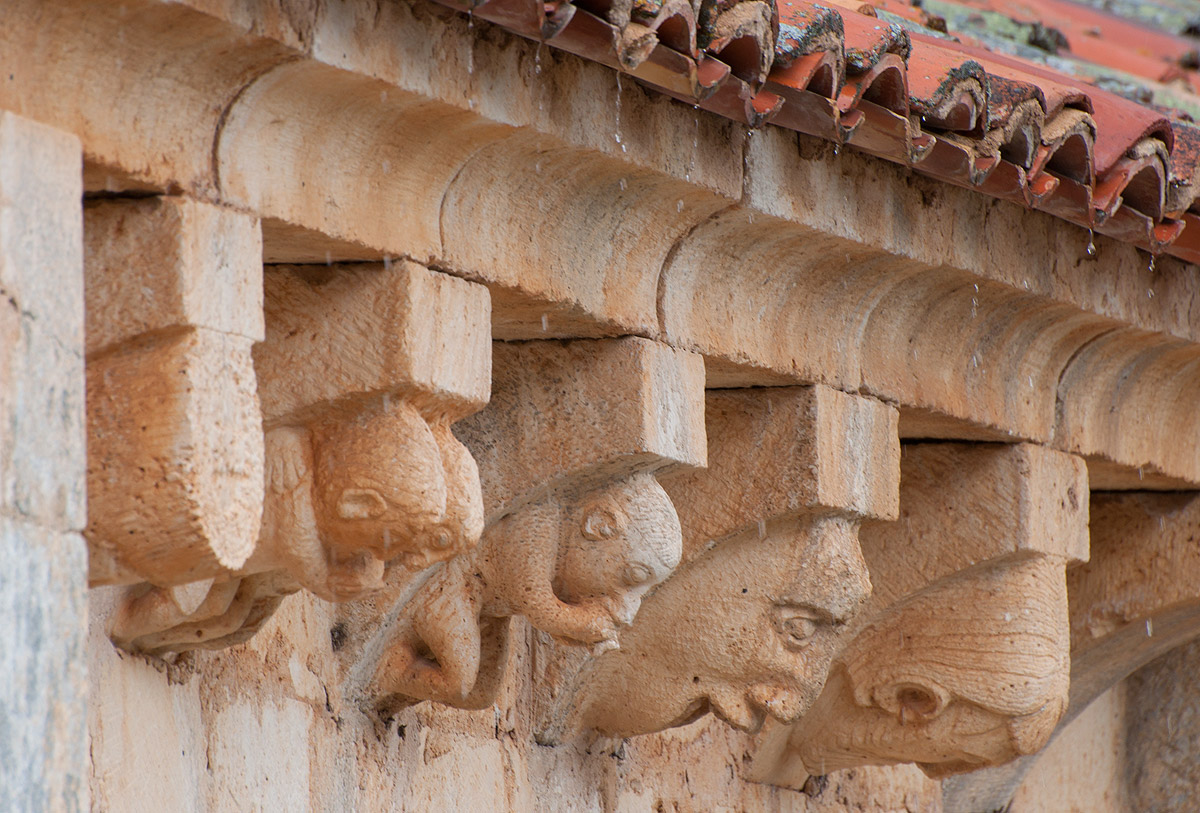 La simbología templaria está presente, entre otros detalles, en los hermosos canecillos del pequeño templo