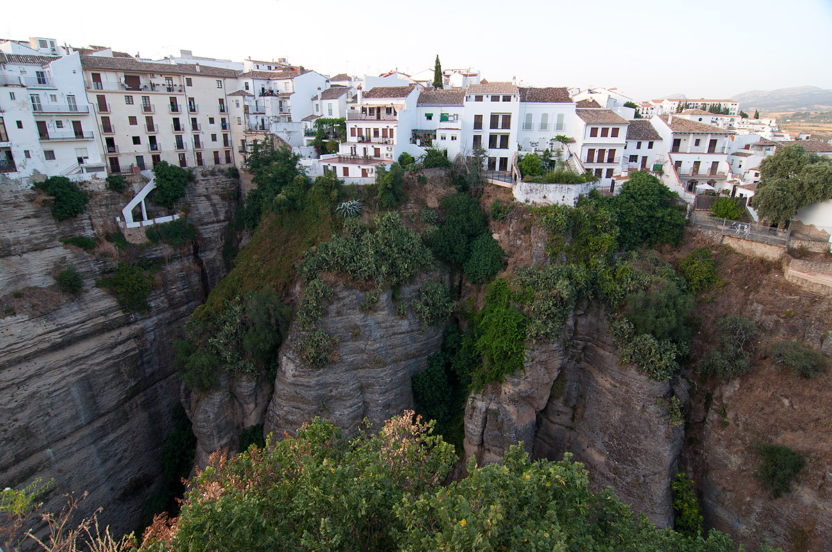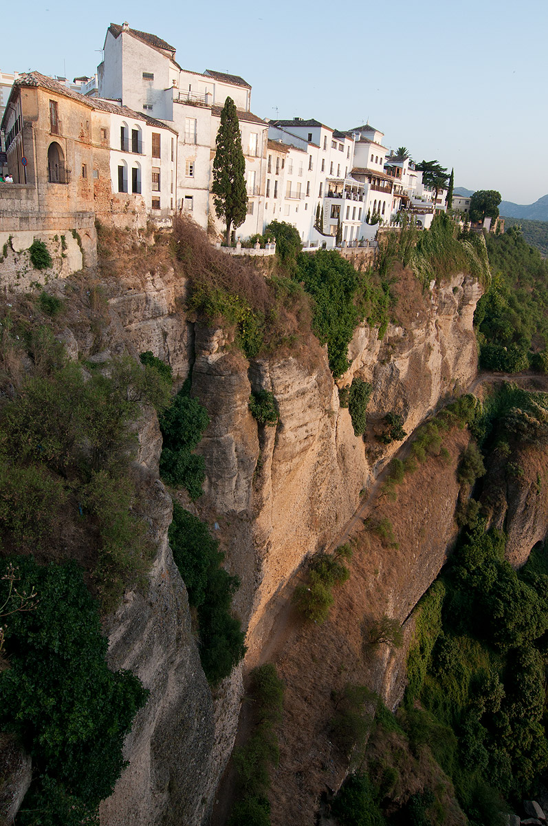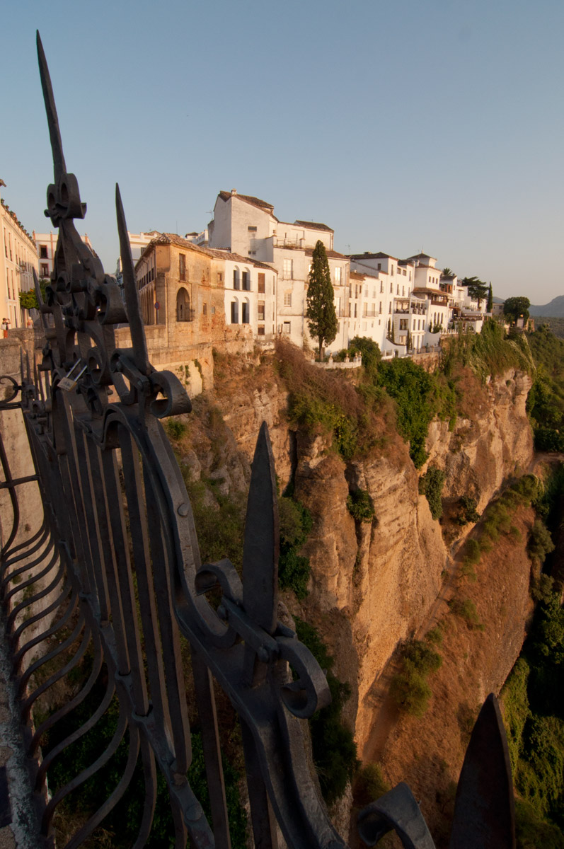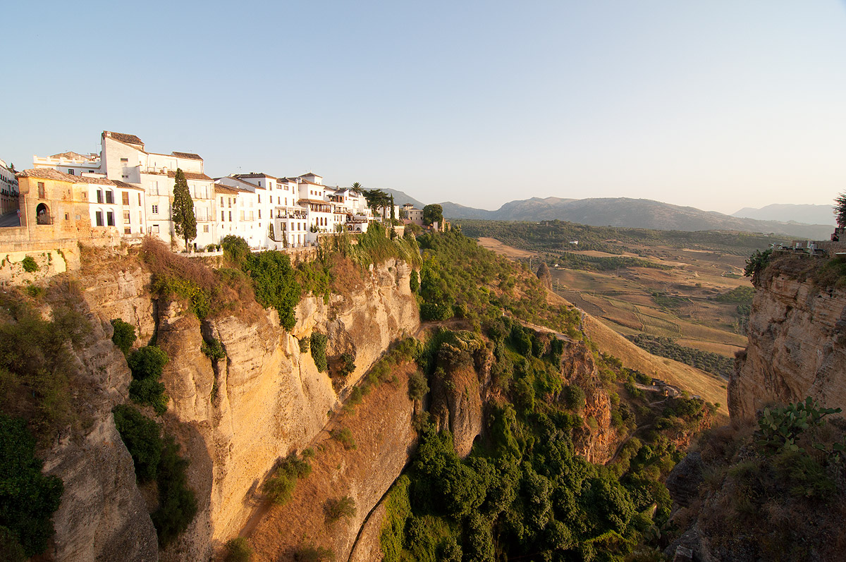 Al atardecer el sol da una preciosa y cálida luz a las casas que se asoman al Tajo desde el casco viejo de Ronda, y el bellísimo paisaje de la Serranía de Ronda se abre ante nuestros ojos