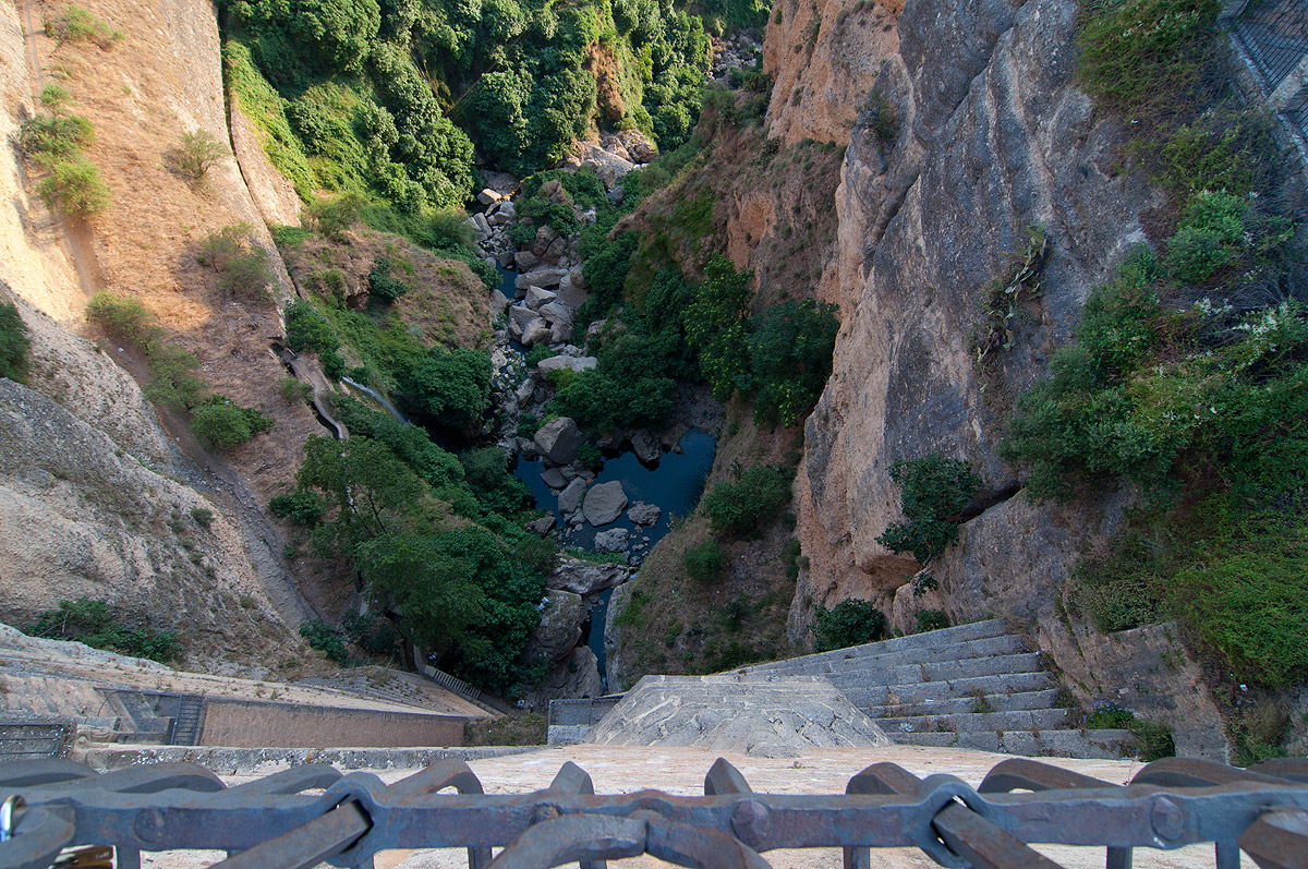 Unas escaleras llevan a una plataforma bajo los arcos del Puente Nuevo y, desde allí, al Centro de Interpretación, un tanto decepcionante, en su interior. En el trayecto las vistas también son espectaculares