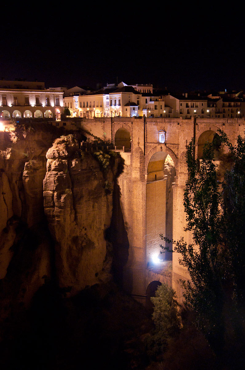 Iluminado en la noche el Puente Nuevo de Ronda ofrece una estampa todavía más impresionante