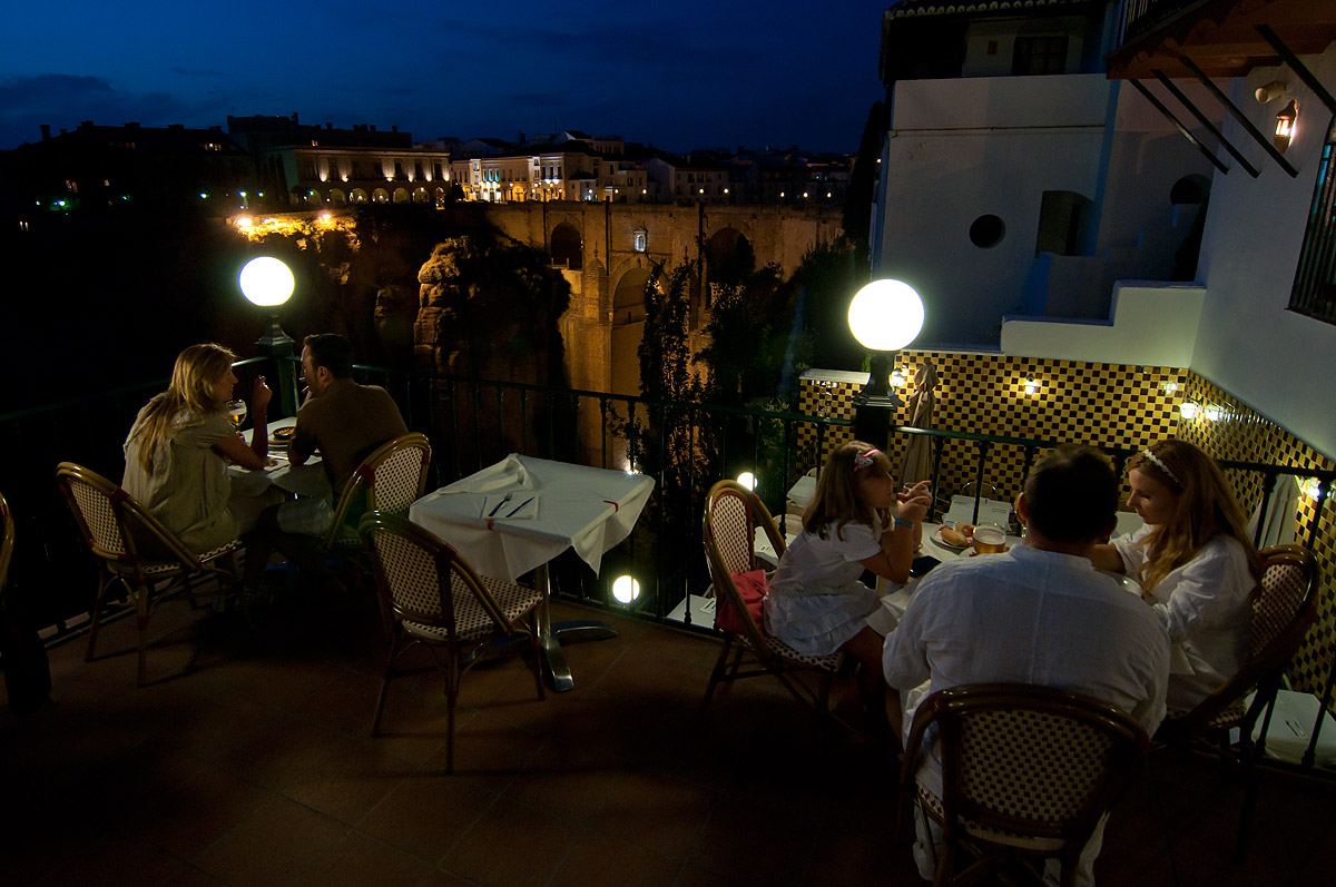 Cenando frente al Puente Nuevo y disfrutando de las vistas y del fresco de la Serranía de Ronda, un auténtico lujo