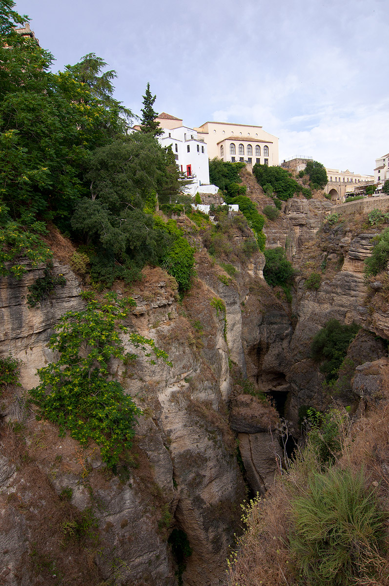 La perspectiva del Tajo y el Puente Nuevo es impresionante desde los miradores abiertos a media altura, en una zona en la que las paredes de roca se dan un respiro