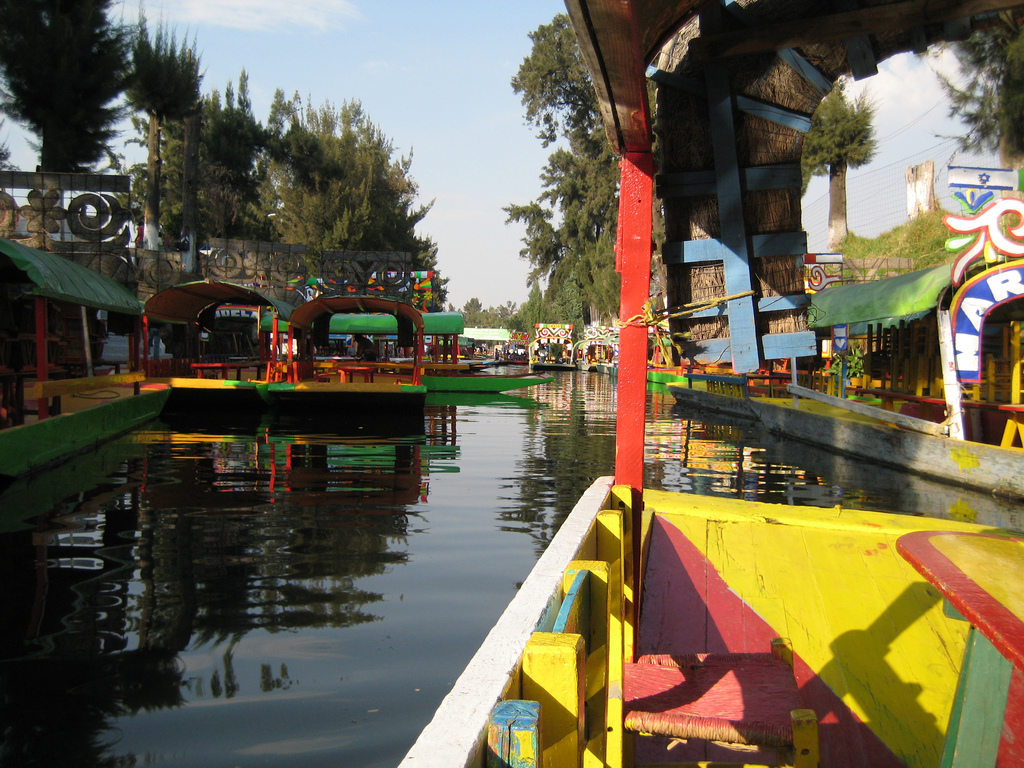 La capital azteca descansaba sobre un lago cuando fue conquistada por Hernán Cortés y hoy poco queda de él, pero todavía podemos encontrar algunos canales en la zona de Xochimilco, con una versión de lo más mejicana de las góndolas venecianas, como podemos ver en la imagen