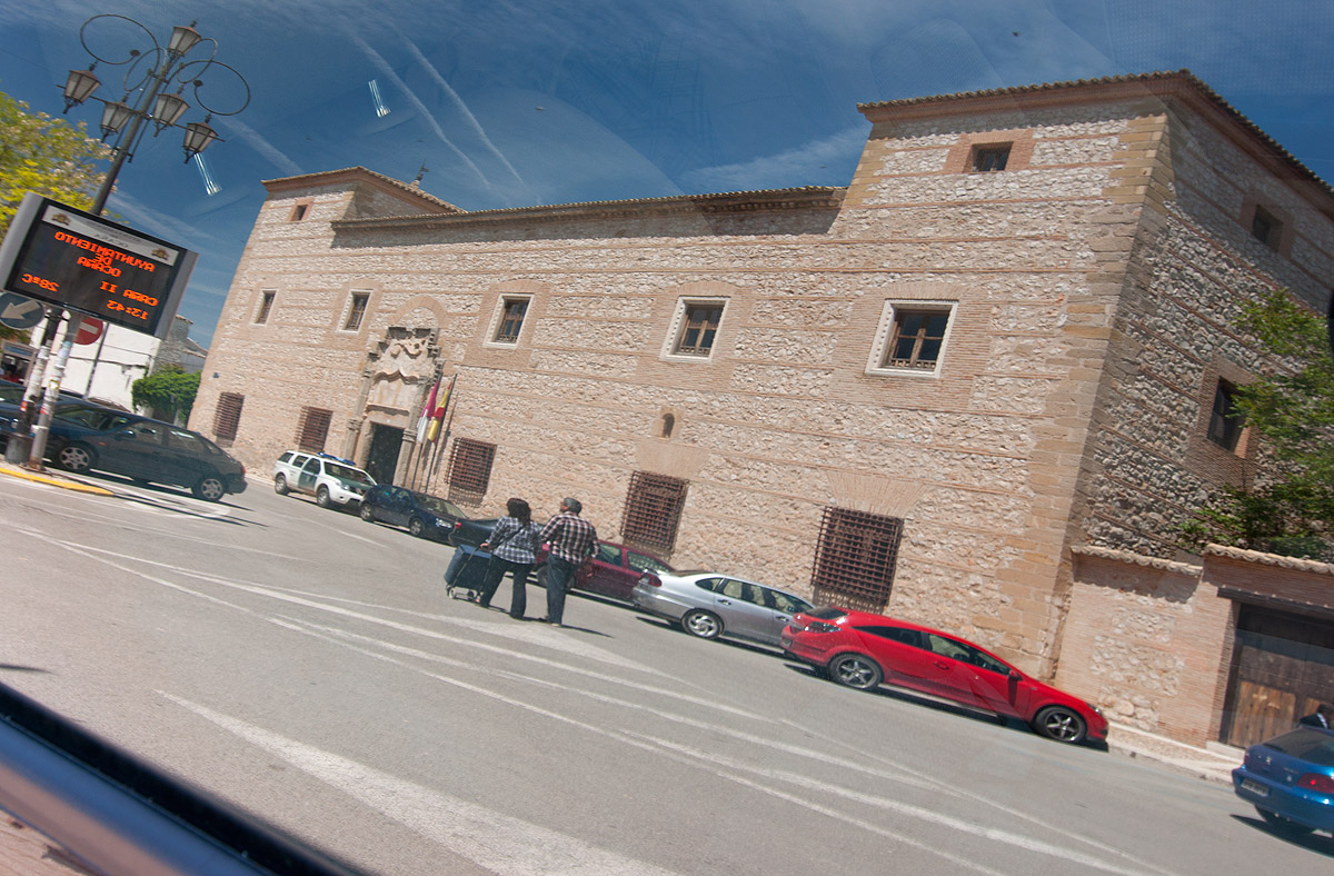 El Palacio de los Cárdenas es la sede de los juzgados en la actualidad y uno de los edificios más hermosos de Ocaña. En la imagen vemos su fachada reflejada en la ventanilla de un coche