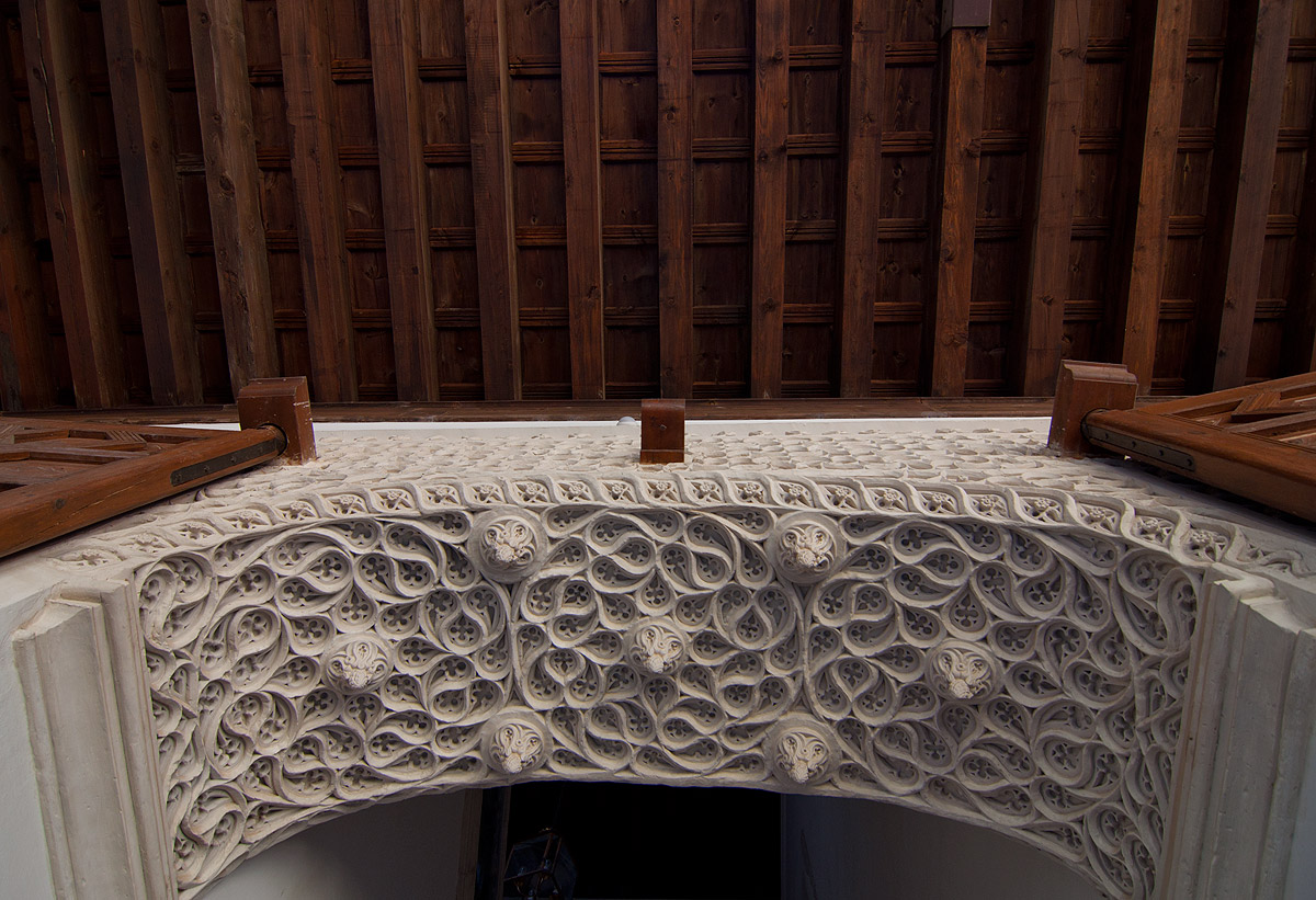 Impresionante decoración en el arco que da entrada a la escalera interior del Palacio de los Cárdenas