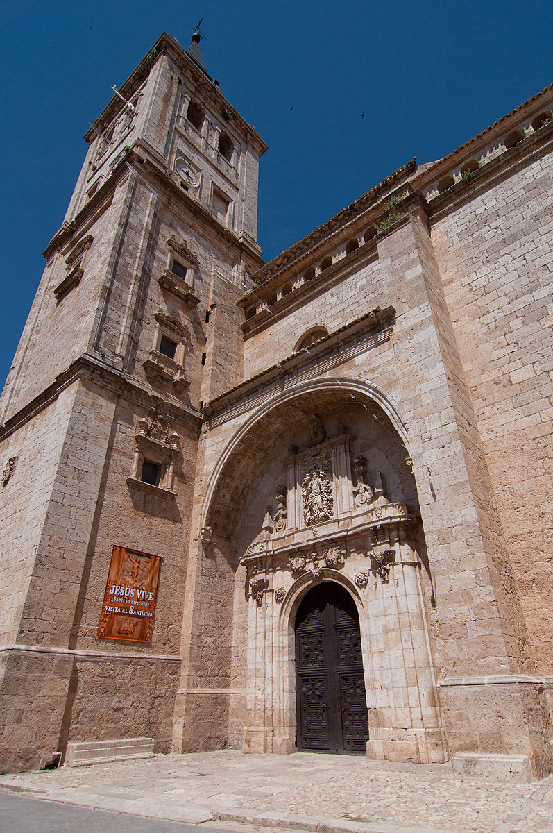 Una de las portadas de la iglesia y su gran torre. La Colegiata es obra del arquitecto Alonso de Cobarrubias, que la diseñó en 1533