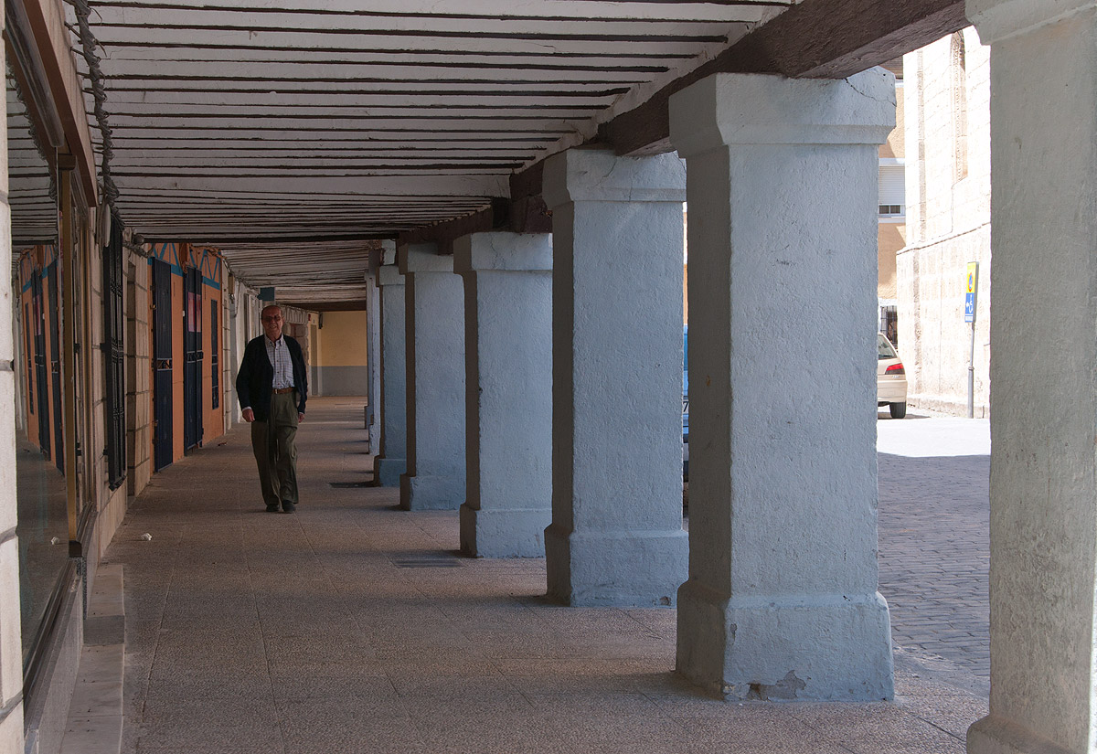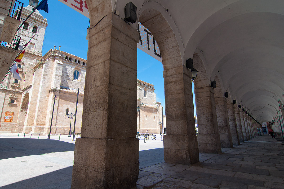Otra imagen de la Plaza Mayor desde los soportales del Edificio de las Buhardillas, como se conoce a uno de los que, con Iglesia y Ayuntamiento, da forma a la plaza