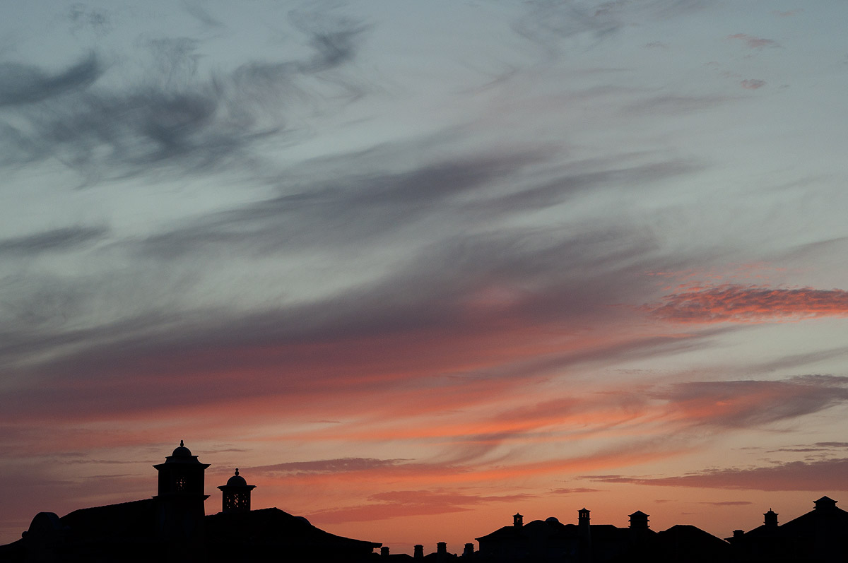 Un bonito atardecer sobre los tejados de algunas villas de Martinhal