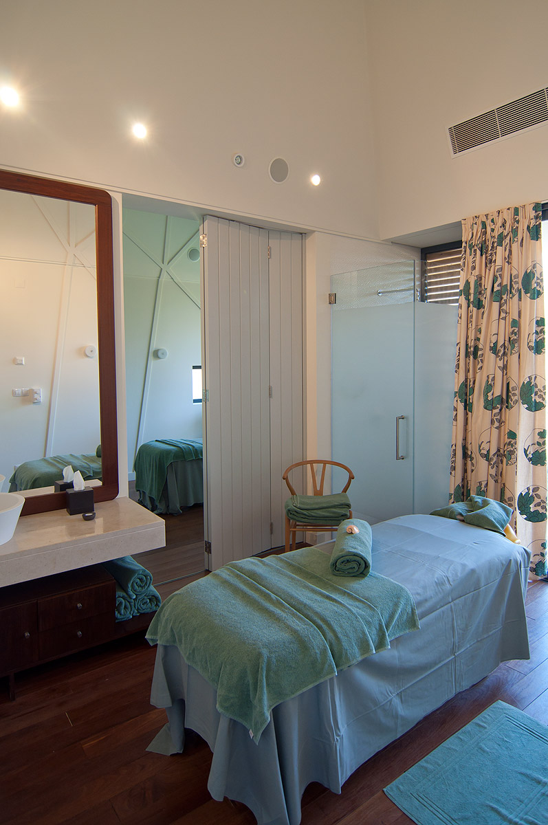 Salas del spa para masajes, bien equipadas, agradables y con luz natural
