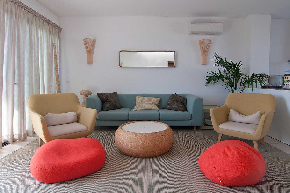 El comedor, en primer plano, y el salón de una villas del tipo Bay Houses