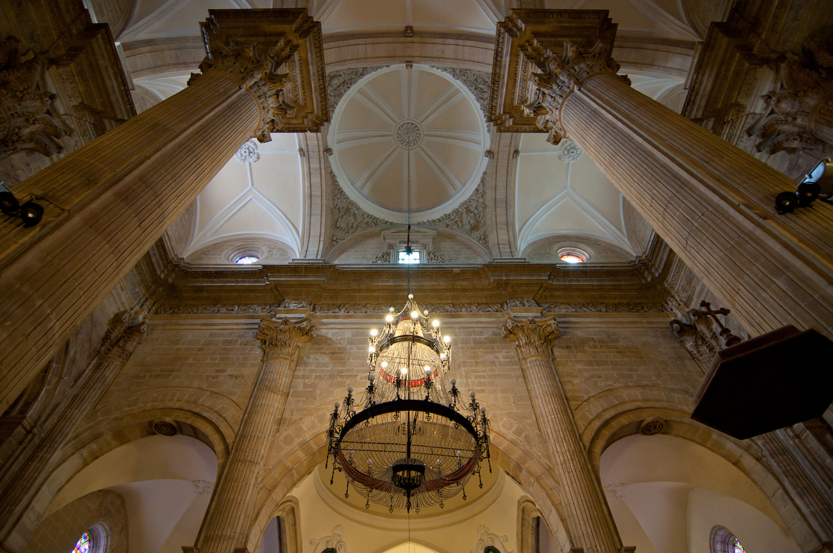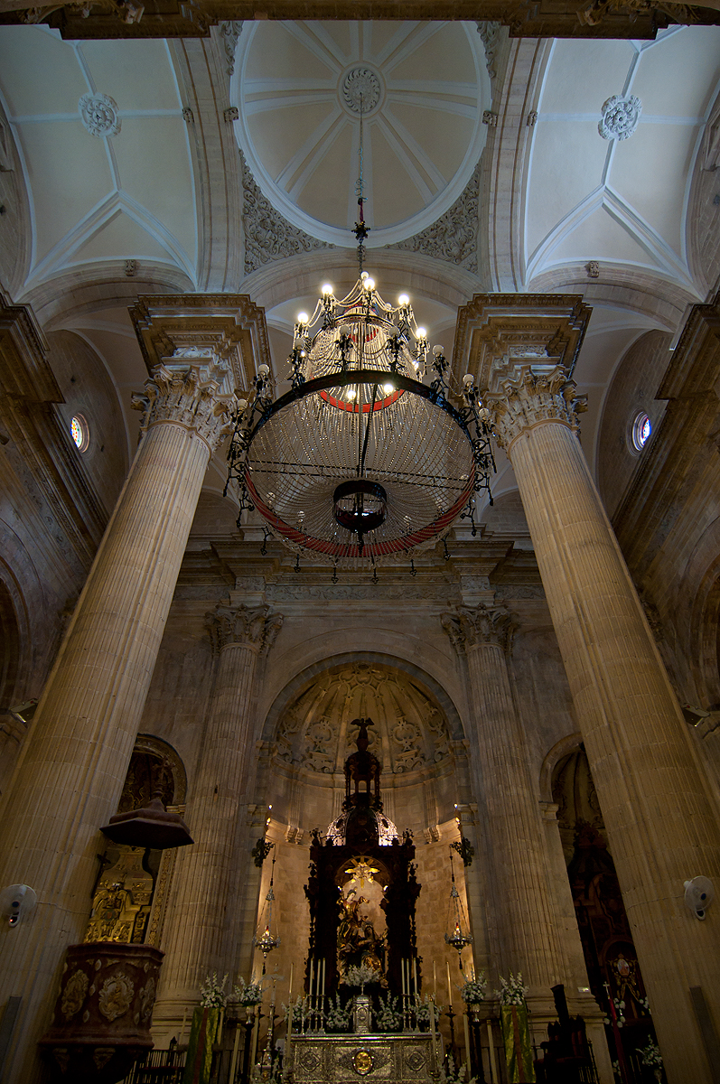 Otra imagen del interior de la iglesia en la que podemos ver una espectacular lámpara que ilumina el templo
