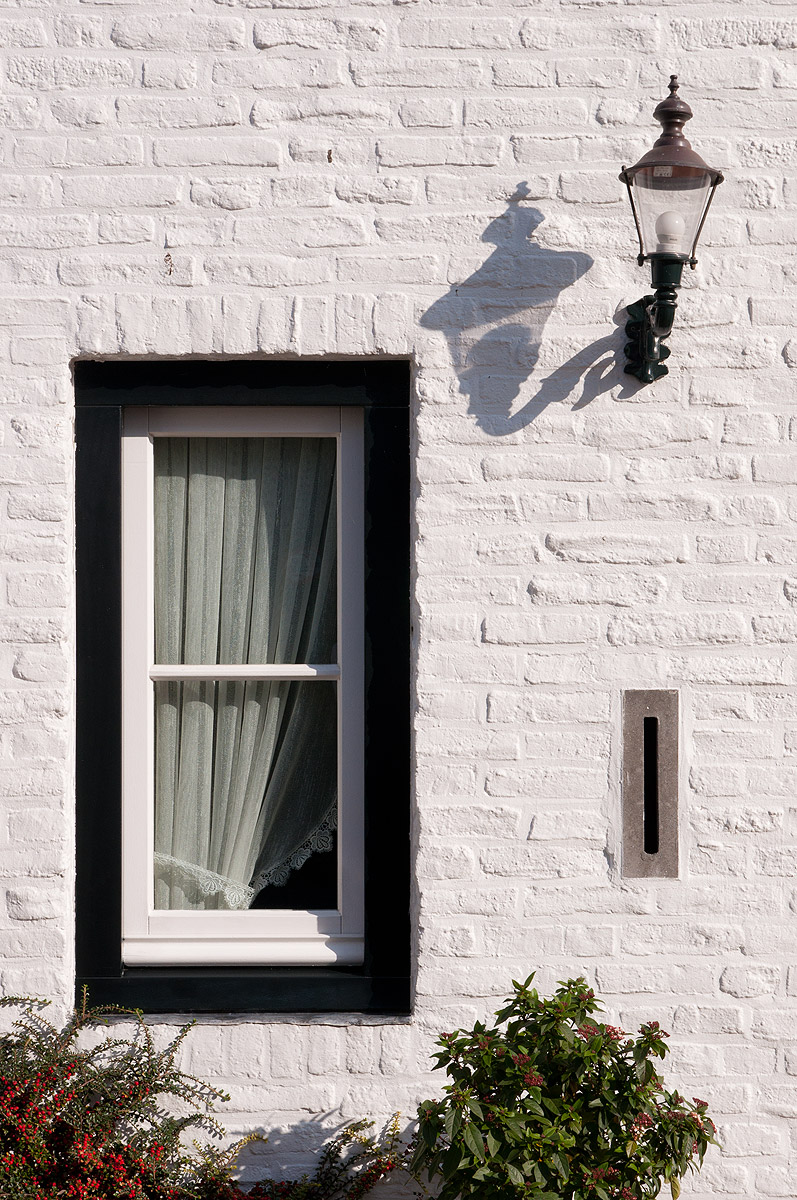 Una ventana típica de Thorn, contrastando con la blanquísima pared