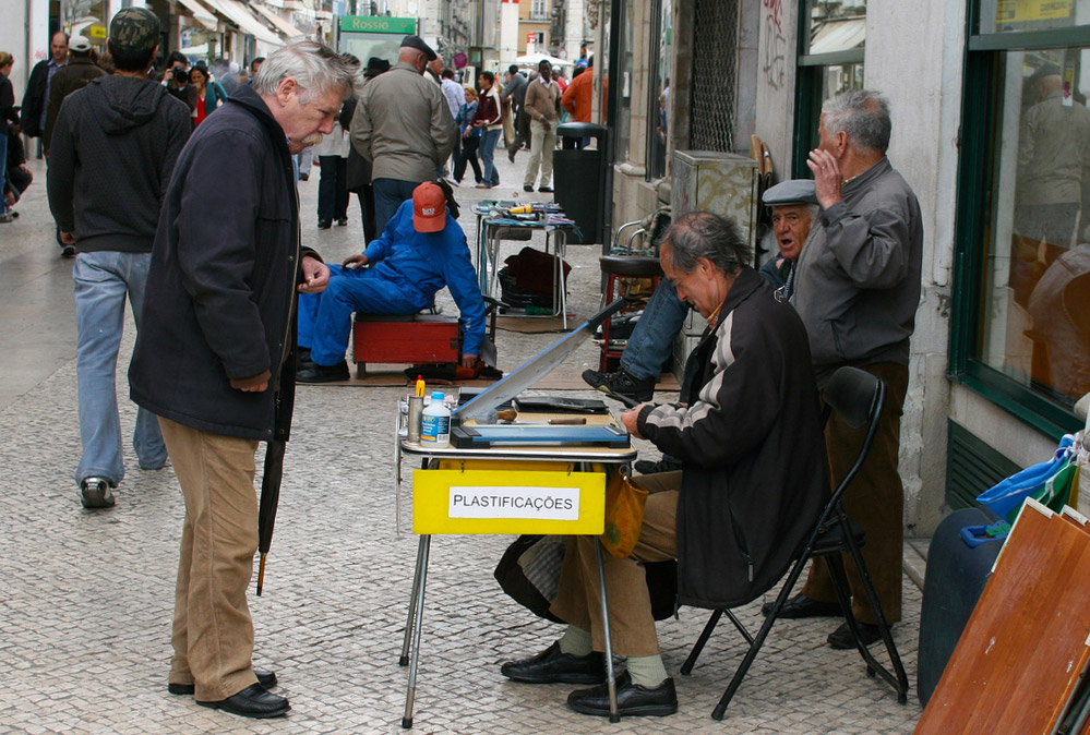 La capital portuguesa es ya una urbe moderna con tiendas de moda a la altura de las mejores ciudades europeas, pero además también podemos disfrutar del encanto de un comercio "informal" como el que vemos en la imagen, tomada en una calle céntrica